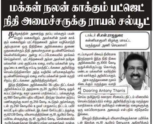 Read Moreமக்கள் நலன் காக்கும் பட்ஜெட் நிதி அமைச்சருக்கு ராயல் சல்யூட் - குமாரி மாவட்ட மருத்துவ அணி செயலாளர் சி.என். ராஜதுரை.