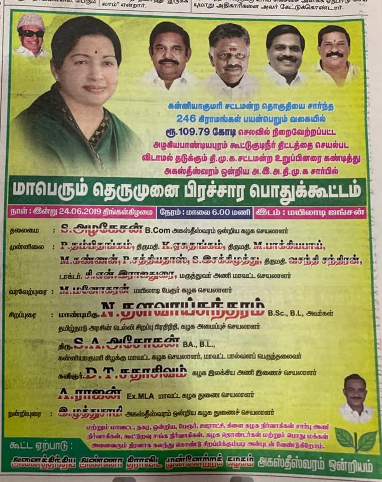 கன்னியாகுமரி மாவட்ட அரசியலுக்கு புத்துயிரூட்டிய Dr. CNR அவர்களுக்கு நன்றி. உதாரணம்:1,இதுவரை இல்லாத அளவு மாவட்ட கூட்டத்திற்கு செல்லும் தொண்டர்களுக்கு விருந்து, உதாரணம் மாவட்ட செயலாளர் இதுவரை இல்லாத வகையில் தொண்டர்களுக்கு மரியாதை கொடுத்து பேசுவது, உதாரணம்: பேப்பர் விளம்பரங்கள்,போஸ்டர்கள்.